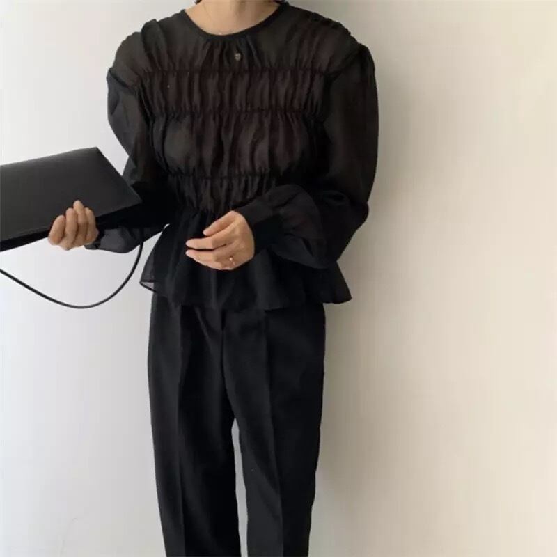 メッシュフリルトップスです。