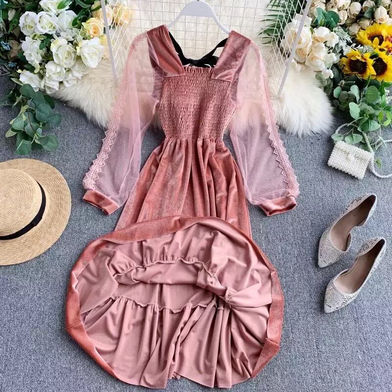 ベロアメッシュロングワンピースです。