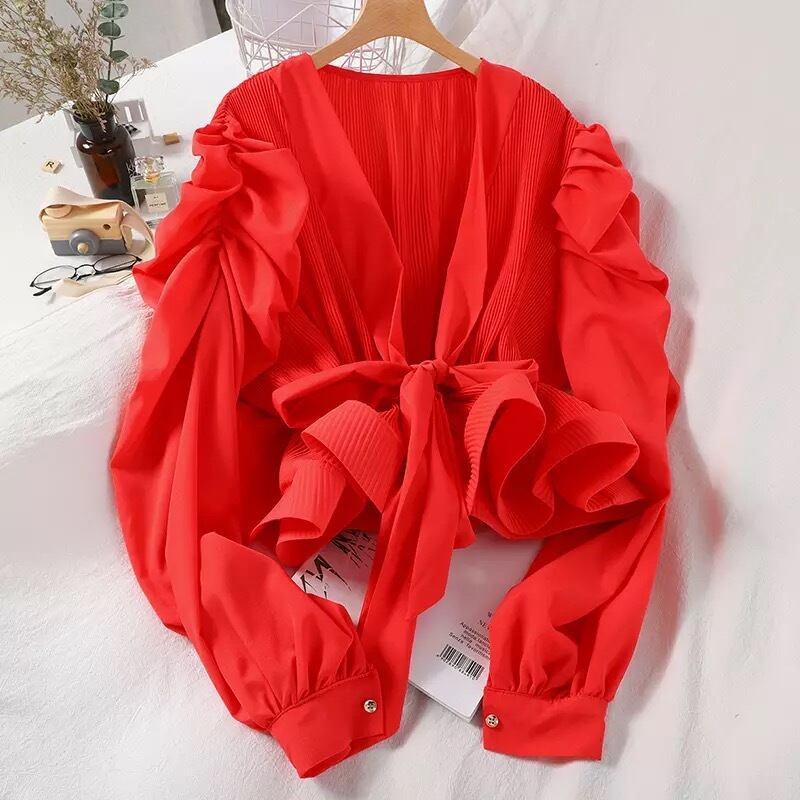 Vネックフリルトップスです。