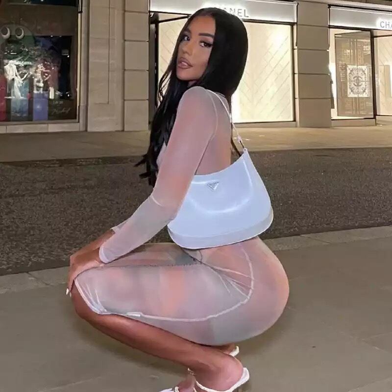 【メッシュロングワンピース】