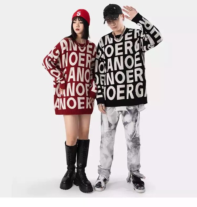 文字ニットトップスです。
