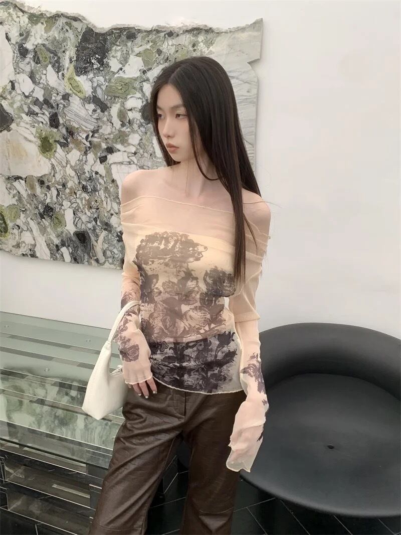【柄メッシュトップス】